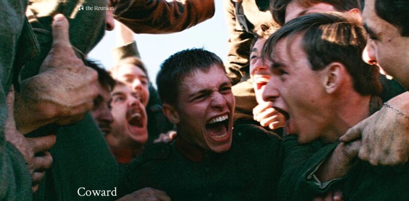 La Compétition, le pourtant jeune cinéaste flamand Lukas Dont connaît, puisqu’il y présentait en 2022 son deuxième long métrage, Close, reparti avec le Grand Prix. Avec Coward, son troisième film, il explore quand à lui une autre guerre mondiale, la première, l’histoire de Pierre, un jeune soldat qui veut faire ses preuves sur le champ de bataille. Mais à l’arrière de la ligne de front, il rencontre Francis, qui va lui faire découvrir la vie autrement.
