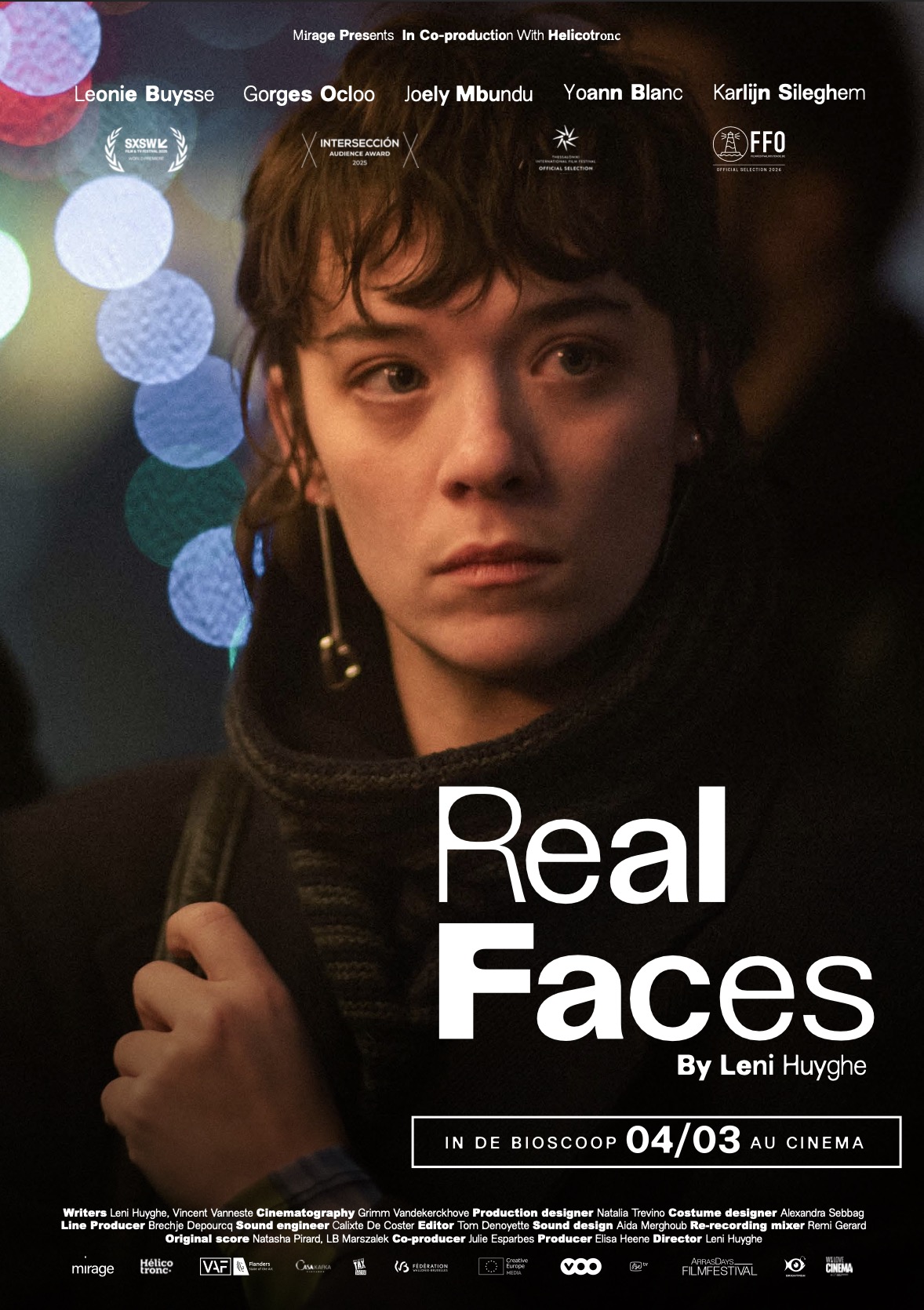 Na de prachtige openingsavond van de 18de editie van Filmfestival Oostende was het de volgende dag Real Faces, de eerste langspeelfilm van regisseur Leni Huyghe, die er in première ging. Samen met haar cast werd Huyghe op de rode loper hartelijk verwelkomd. Aan haar zijde onder meer Leonie Buysse, die de hoofdrol vertolkt. Ook Yoann Blanc, Karlijn Sileghem en Gunther Lesage tekenden present voor de feestelijke vertoning. De film werd warm onthaald door het Oostendse publiek en loopt vanaf 22 april bij ons in de zalen.